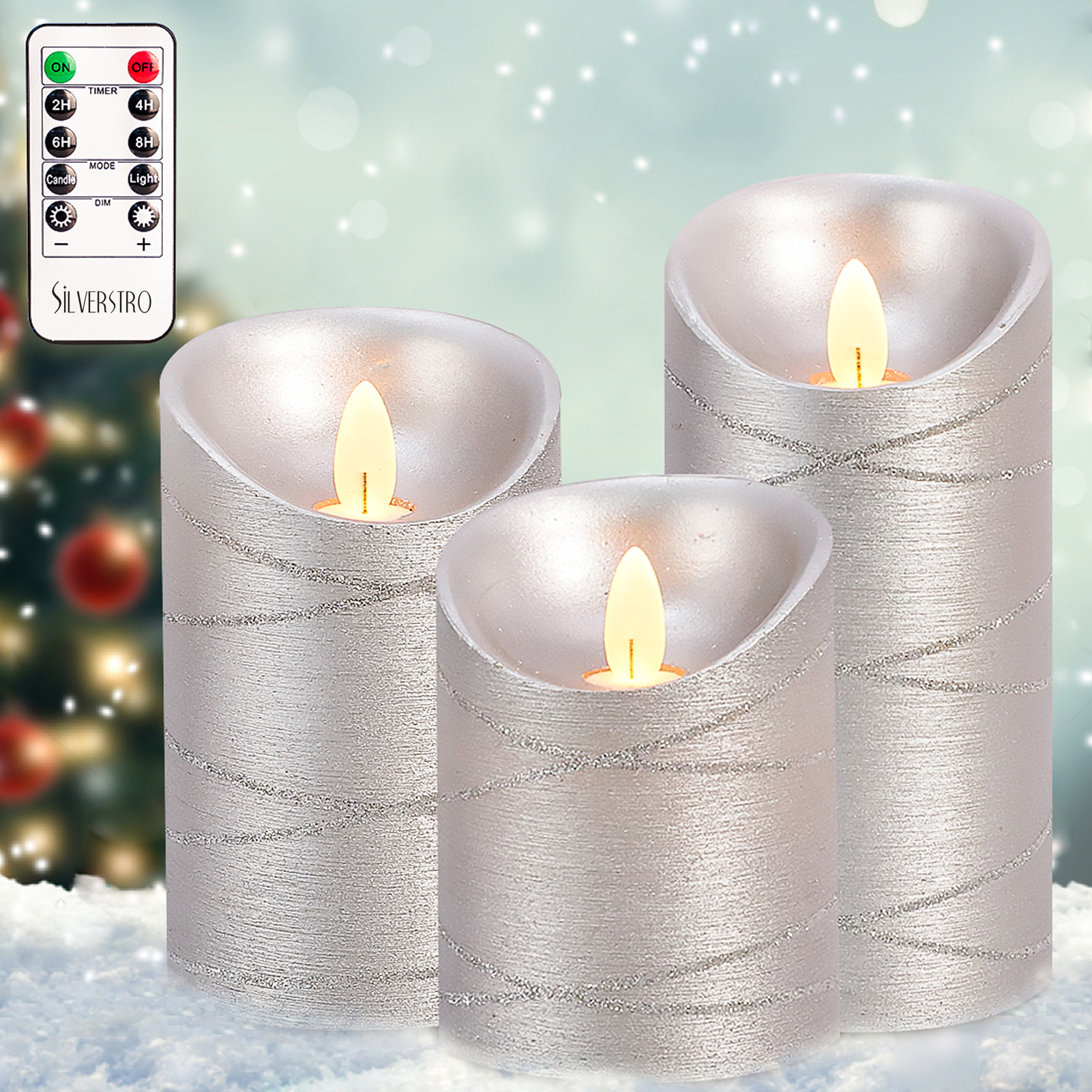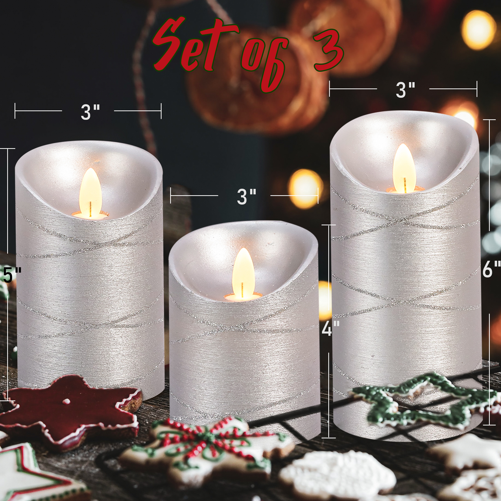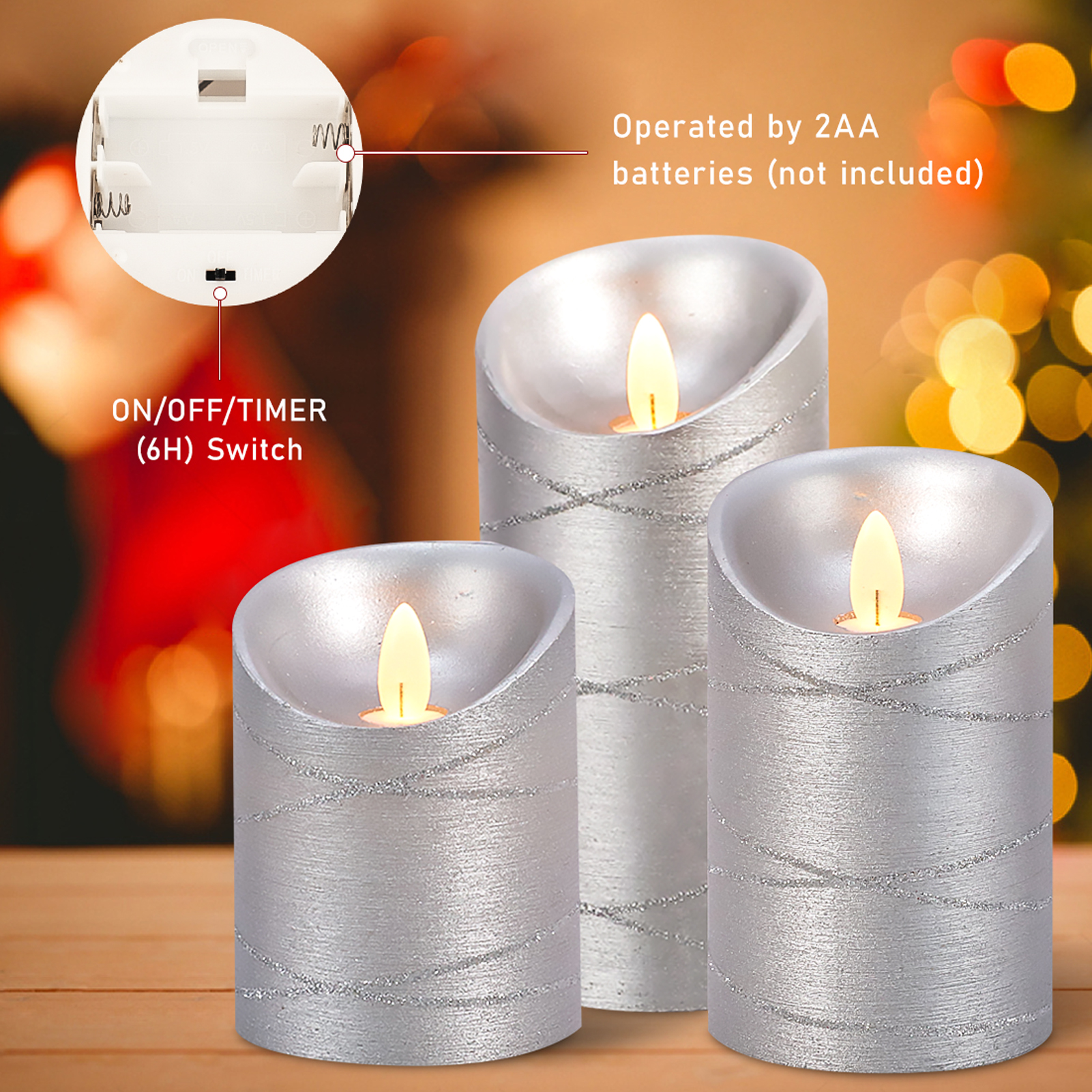 - Decorate Your Christmas with These Beautiful Flameless Candles – Silver flameless candles are made of real paraffin wax, and the surface of the paraffin wax is evenly painted and hand-inlaid with stylish silver trims. They will add a touch of elegance to your entire home. It is perfect for Christmas parties or any event you want to add to the atmosphere.